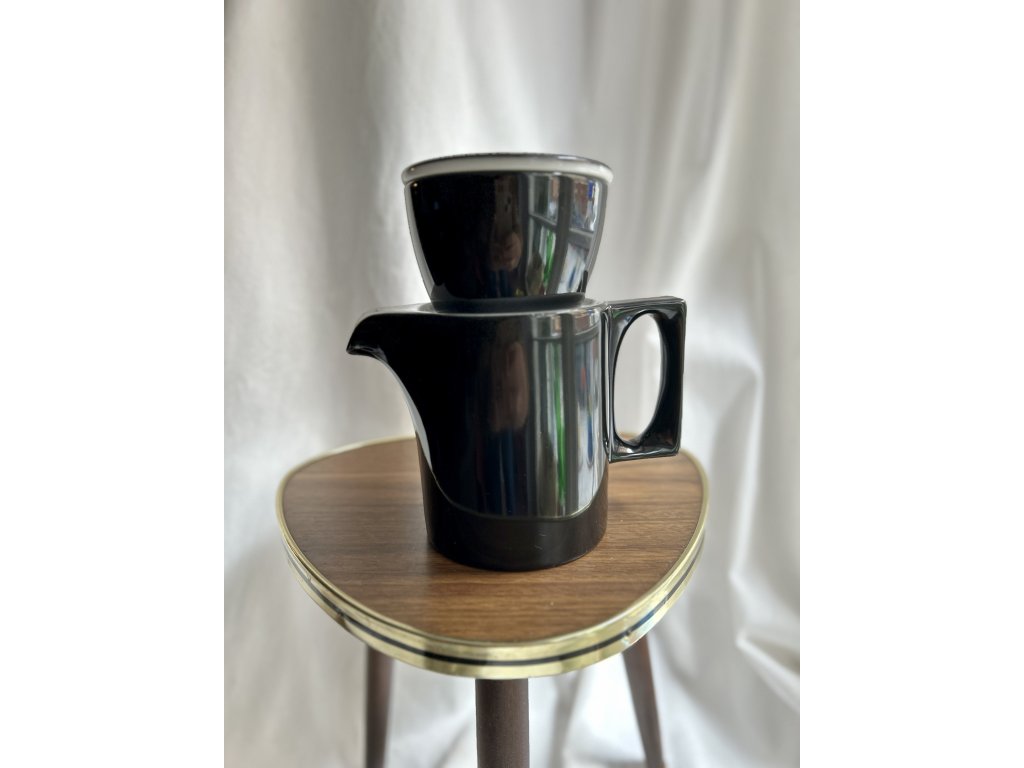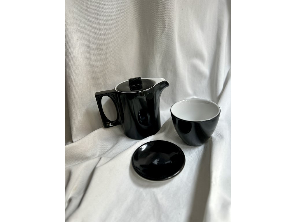Dokonalé oblé tvary a typicky vystouplá ucha od renomované německé porcelánky Walküre evokují bruselský styl se špetkou poválečné moderny a jsou jedním z poznávacích znamení jejich žáruvzdorných a sběrateli oblíbených kousků. Silnostěnný porcelán, vše v top stavu.