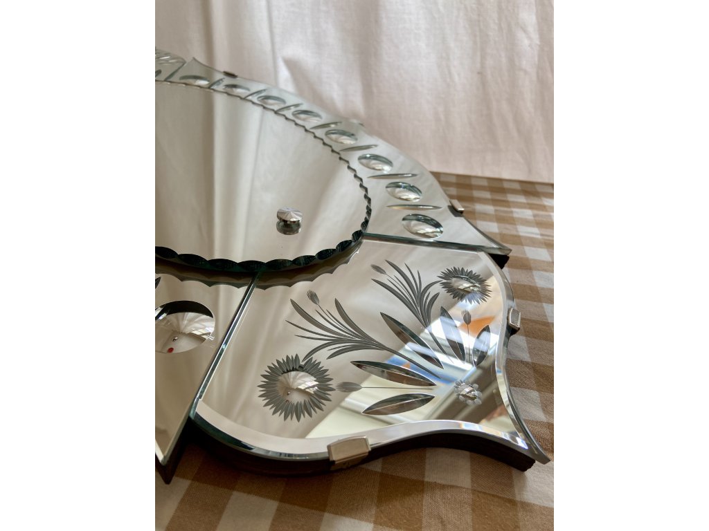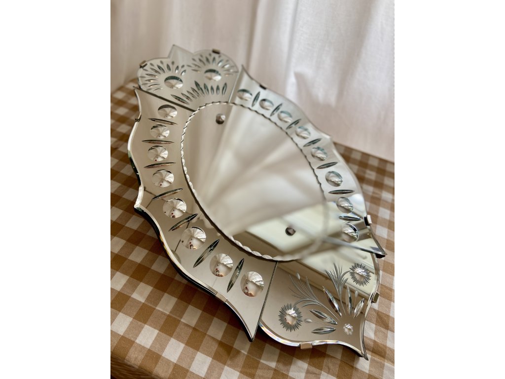 Jako benátské se označuje zrcadlo, které je kolem velkého funkčního zrcadla ve středu obklopené menšími zrcadly, fasetově broušenými nebo rytými. Všechny tyto části jsou pokoveny stříbrem, čímž se vytvoří zrcadlová vrstva. Tento druh zrcadel se od konce 17. století vyvážel především z italských Benátek a během 18. století se jejich výroba rozjela i u nás (na Českolipsku, mém rodném kraji). Odtud nejspíš pochází i ten můj kousek.