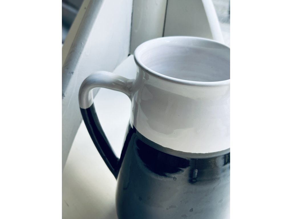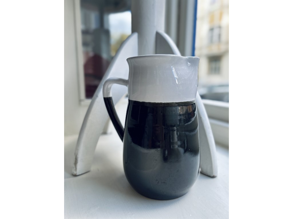 Výrazný velký džbán pro všechny věčné optimisty / pesimisty. Je z poloviny bílý nebo z poloviny černý? Vyrobil podnik Keralit v cca 70. letech minulého století a je v super stavu bez známek používání! Je vysoký 23 cm, značený.