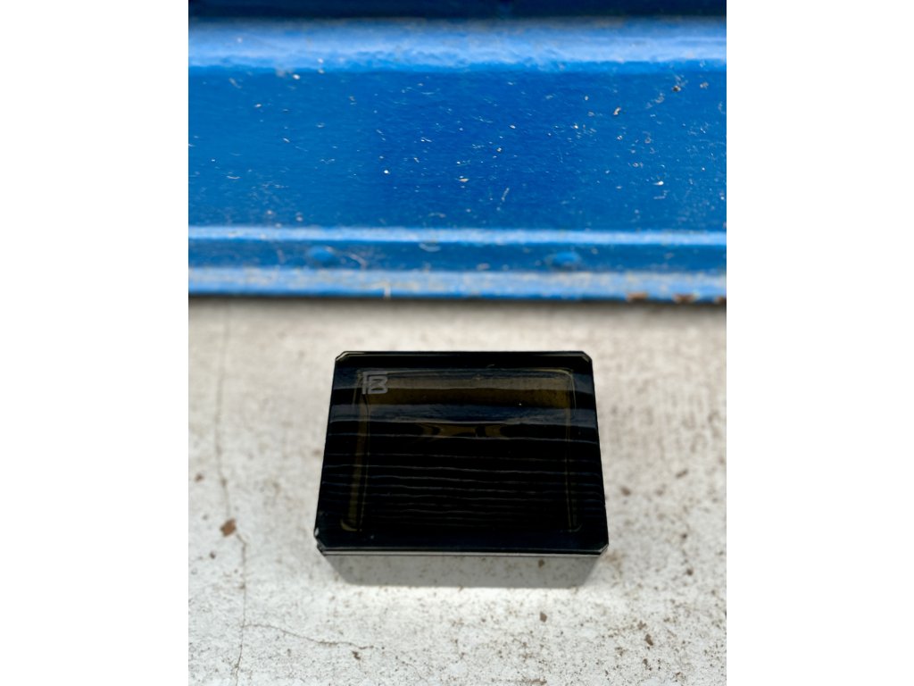 Tento tvar dóz či kazet se používal většinou na (dobré) cigarety (čemuž sedí i jiné označení pro topaz: „kouřové sklo“), custom provedení iniciál napovídá také společenské postavení majitele. Najde se nějaký František Bedrna na úrovni, co tento poklad ocení? Či snad Francesca Brown??