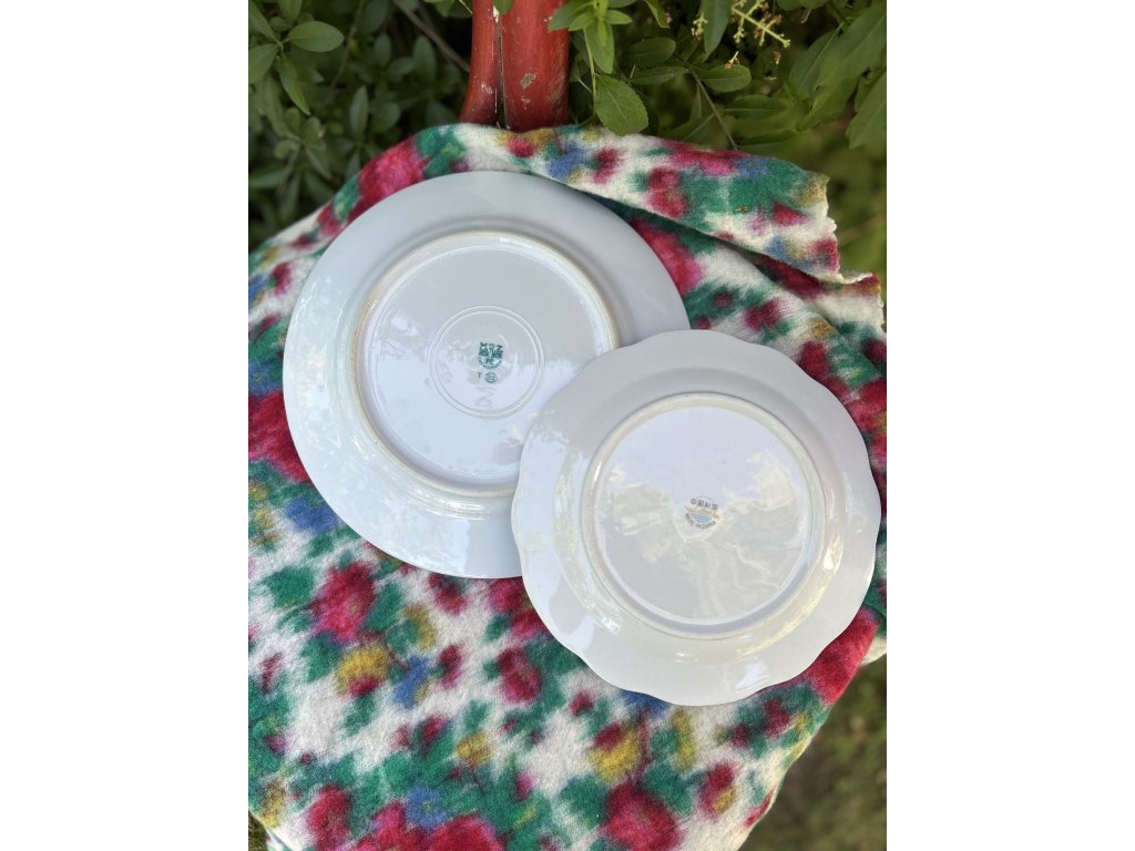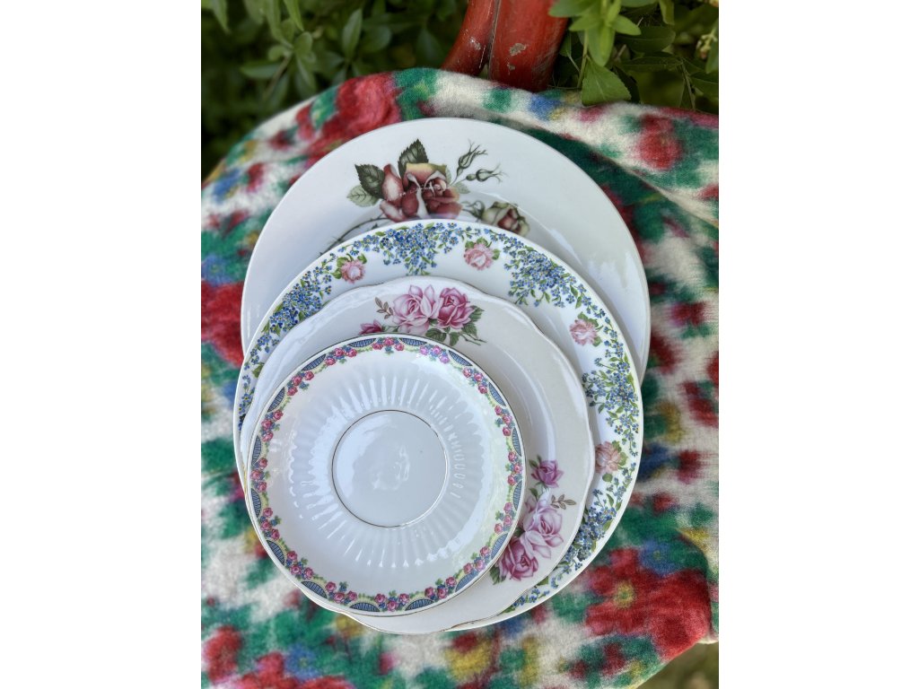 - 3x dezertní talířky Made in China s velmi povedeným potiskem růžových květů. Průměr 20 cm, lehký otěr zlatých lemů.