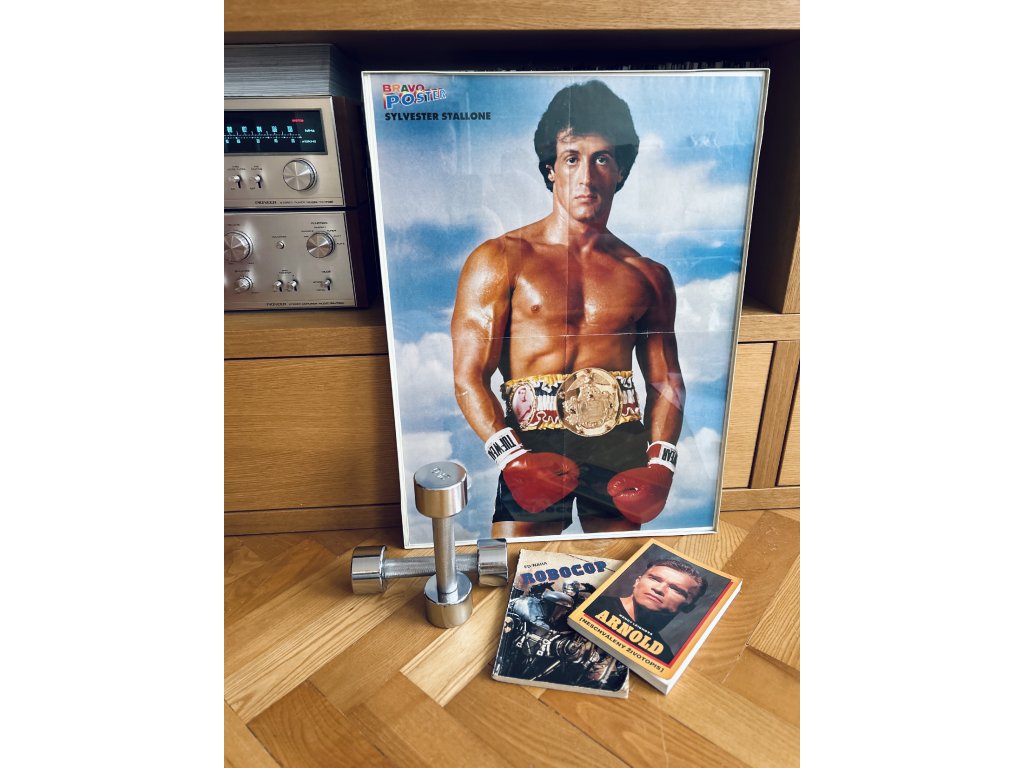 Pod tímhle pohledem začne(te) cvičit! Stylový plakát z časopisu Bravo z 90. let, motivující víc než vzkazy na ledničce. Sylvester Stallone ve své nejslavnější roli boxera Rockyho Balboa. A z druhé strany mu sekunduje neméně „drsný“, ale přesto dost fairy Vanilla Ice (fotku dodám na přání) :).