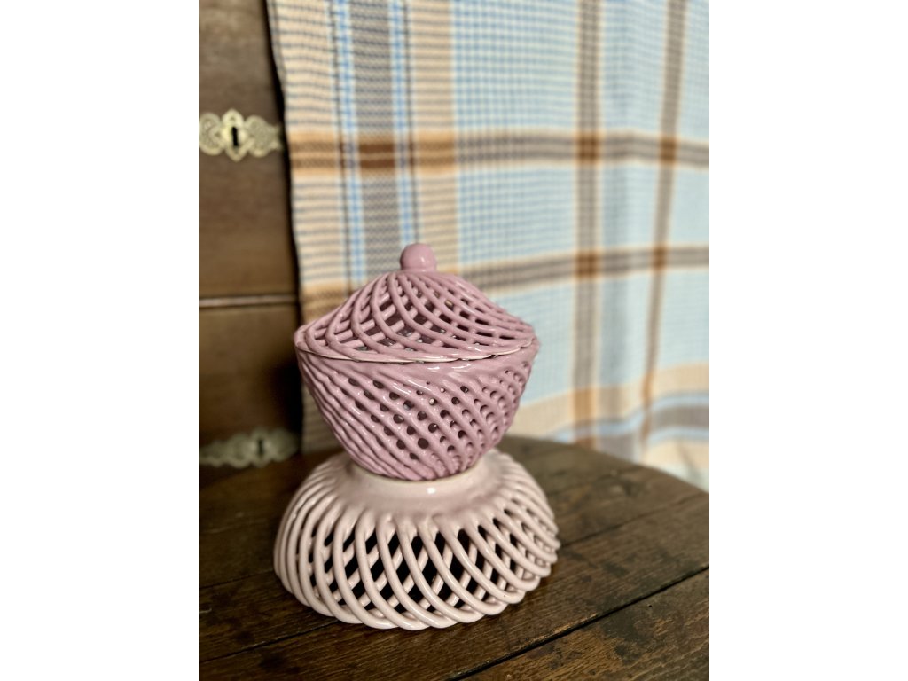 Růžová roztomilost v podobě vintage „pleteného“ košíčku z jemné prolamované keramiky je ručně dělaná, dovezená z Itálie a svou křehkou krásou i baby pink barvou vyloženě pohladí holčičí oko.