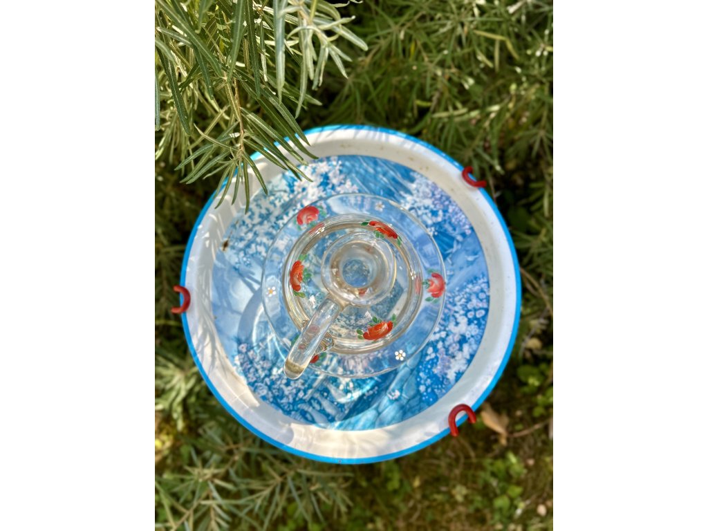 Je vysoký 15 a široký 16 cm, velmi těžký a spíše než na podávání nápojů ho vidím jako originální vázu na luční květy.