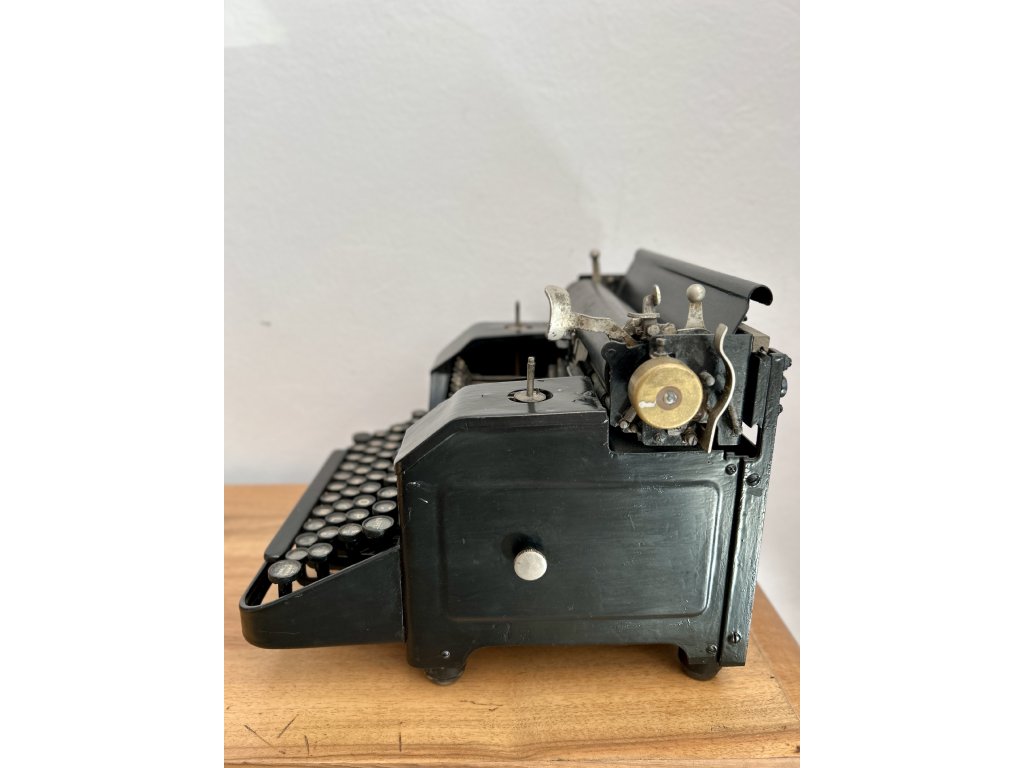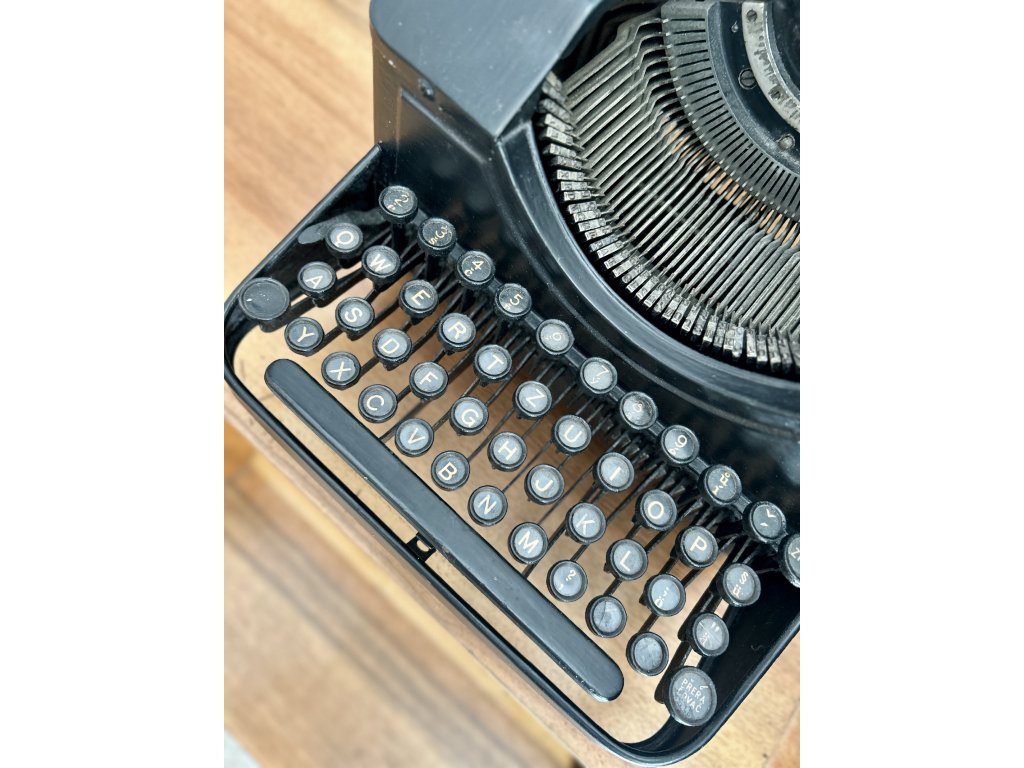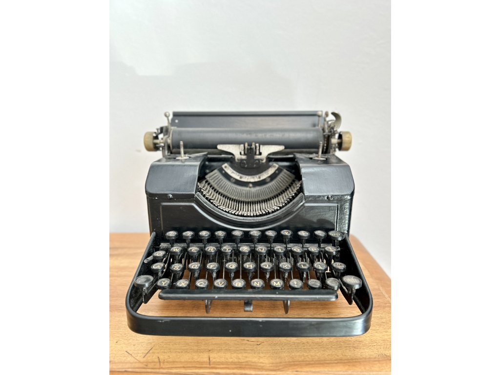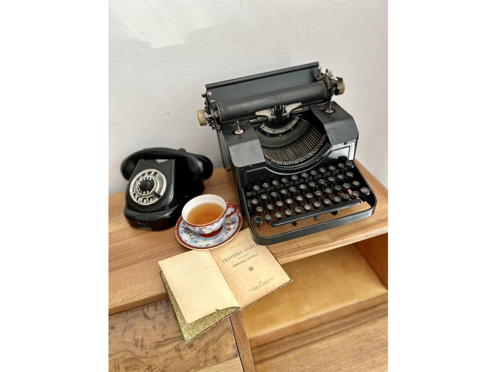 Můj PSACÍ STROJ je černý, z 1. poloviny 20. století a zdá se, že má přebarvenou původní značku (pravděpodobně výrobce Torpedo a zezadu má číselný štítek 84052 nebo 64052). Má českou klávesnici, písmenka by si zasloužila promazat, ale na stylovou výzdobu poslouží krásně - a za krásnou cenu! Váží snad půl tuny, tak bych uvítala osobní vyzvednutí, ale pokud to nepůjde jinak, dá se poslat (kvůli váze NE Zásilkovnou).